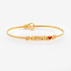 Angel Wing Heart Bangle Bracelet choose finish:Brass Tone