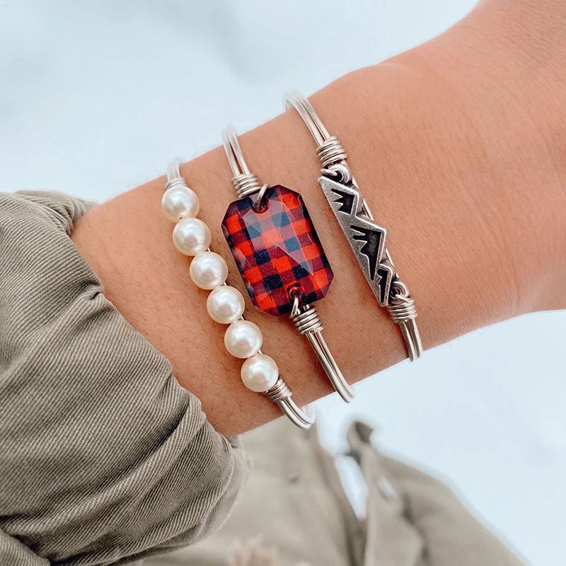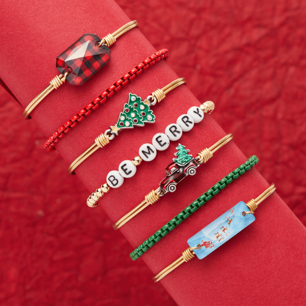 Our seasonally inspired, digitally-printed Red Plaid Dylan Bangle is the perfect accessory to your compliment your holiday hostess lifestyle.