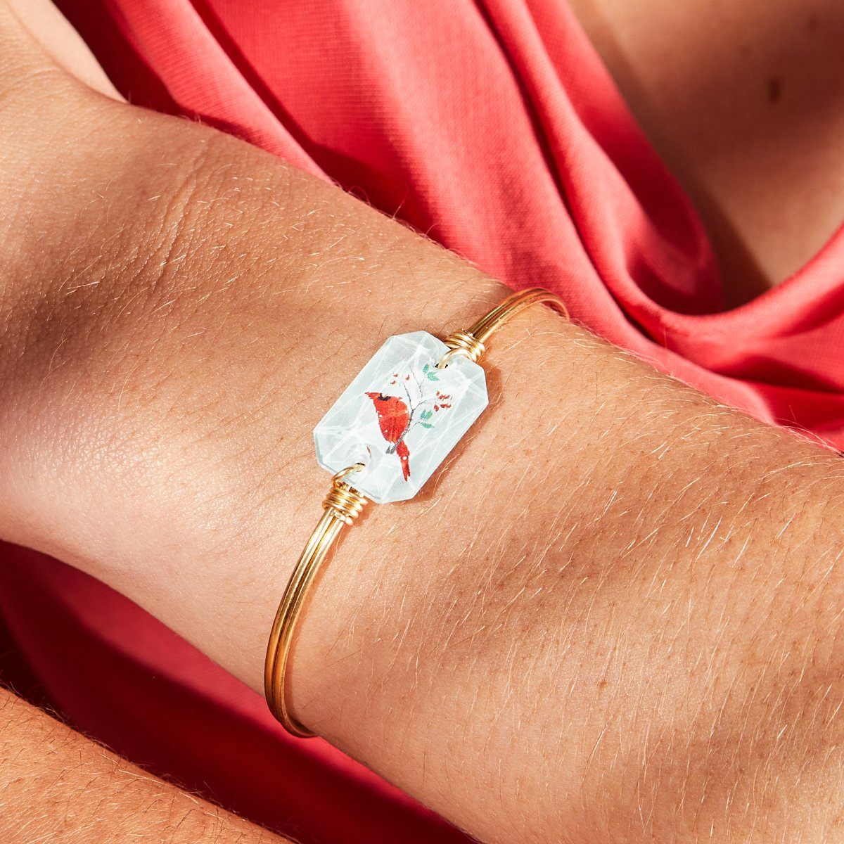 Nest your hopes in a brighter vision for tomorrow. Our digitally-printed Red Cardinal Crystal Dylan Bangle shines in a classic emerald-cut design.