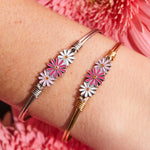 Flower-power pops like never before in our vibrant pink daisy bracelet with a perennial springtime vibe. Each hand-crafted bloom is created with a glossy enamel finish and a yellow crystal in the center for both sweetness and light in one perfect spring bracelet design.