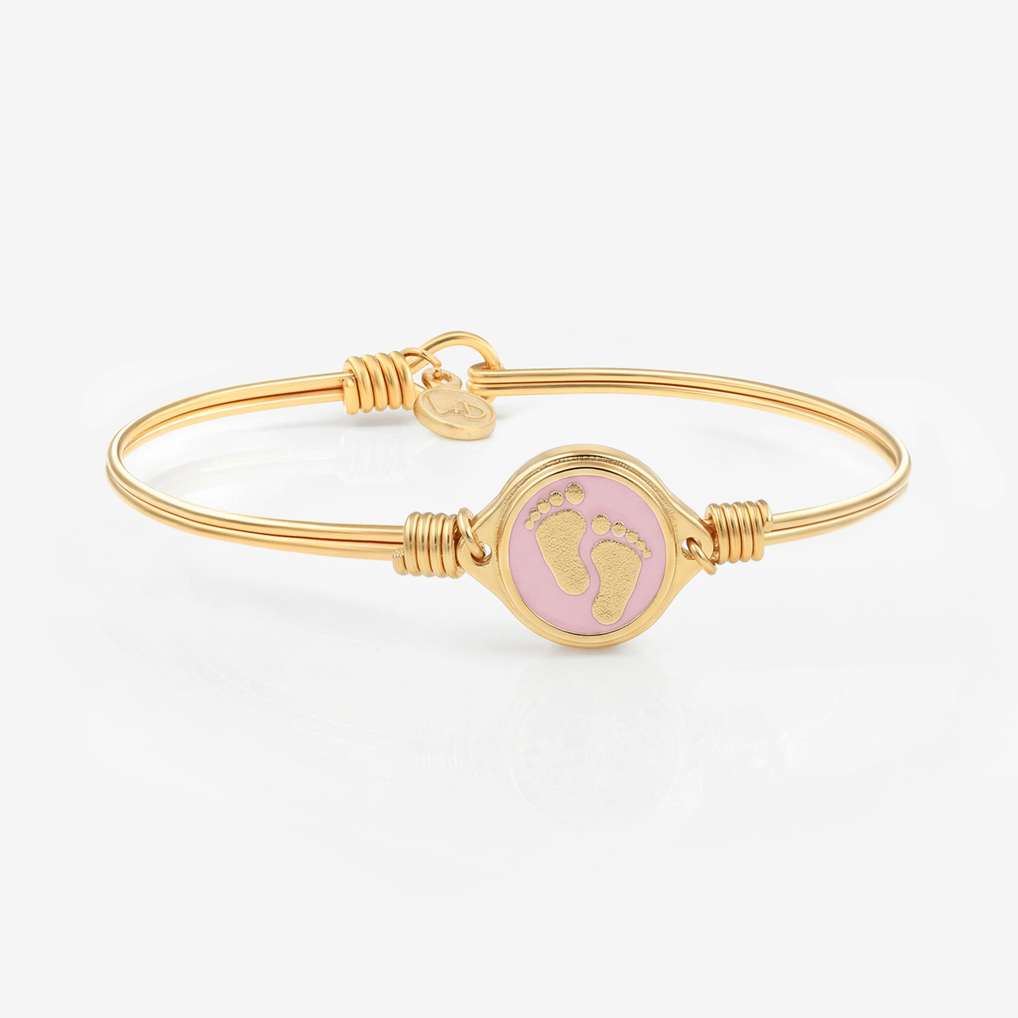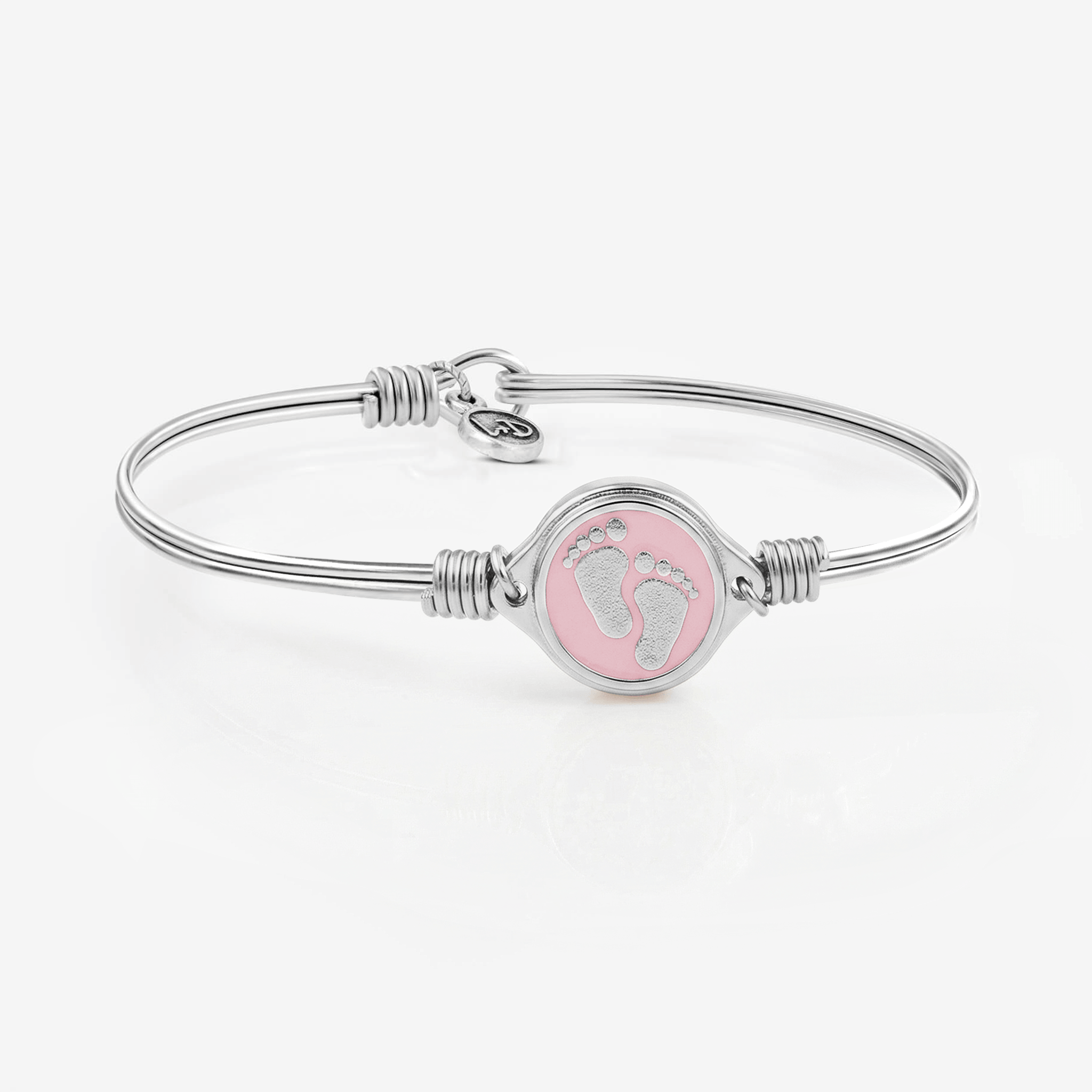 The pitter-patter of little feet isn’t the only thing she’ll be hearing. Ooohs and awwws abound in this baby-loving bangle thanks to a sweet footprint emblem surrounded by a softly colored enamel finish.