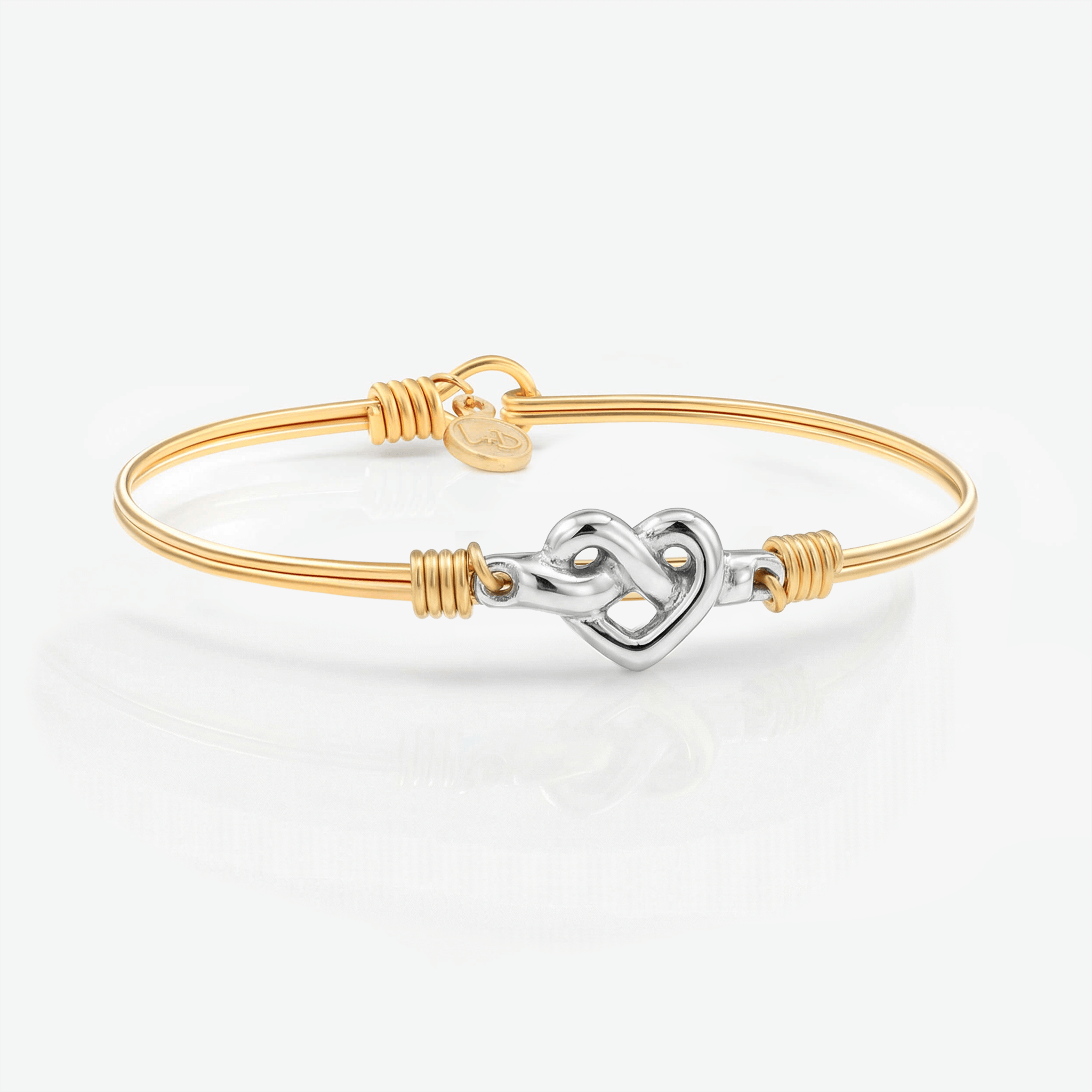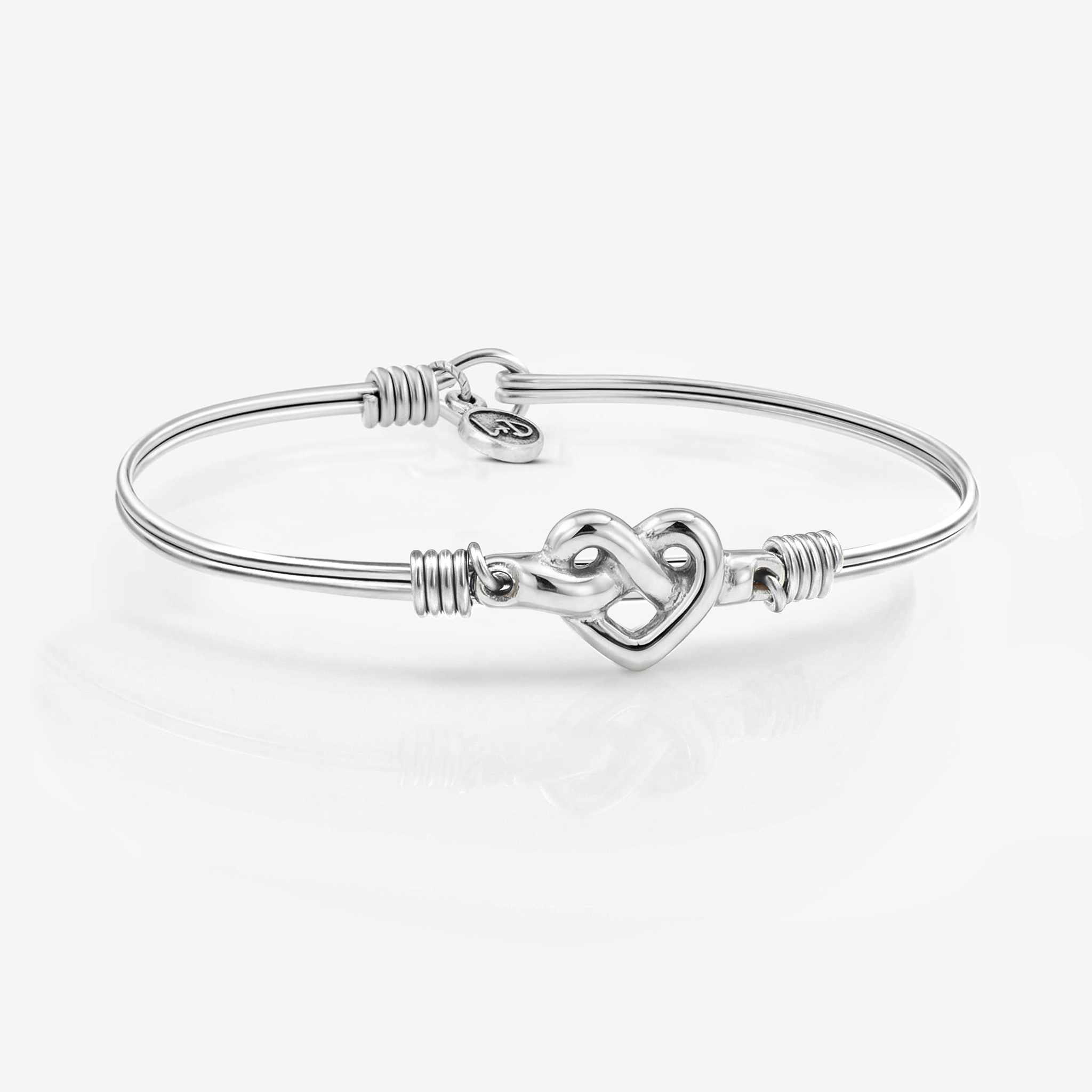 Love is all you need — along with a bangle bracelet to reflect the sentiment. This design features a freeform love knot tied in a heart. Elegant on its own and stunning in a stack.
