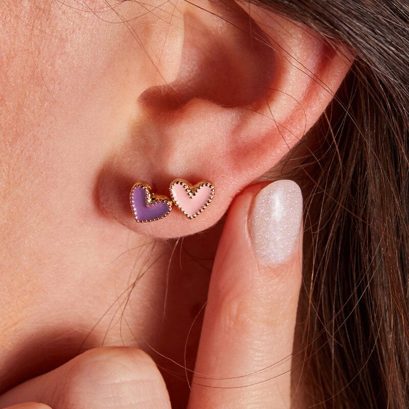 Heart Stud Earrings in Pink