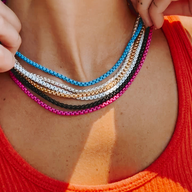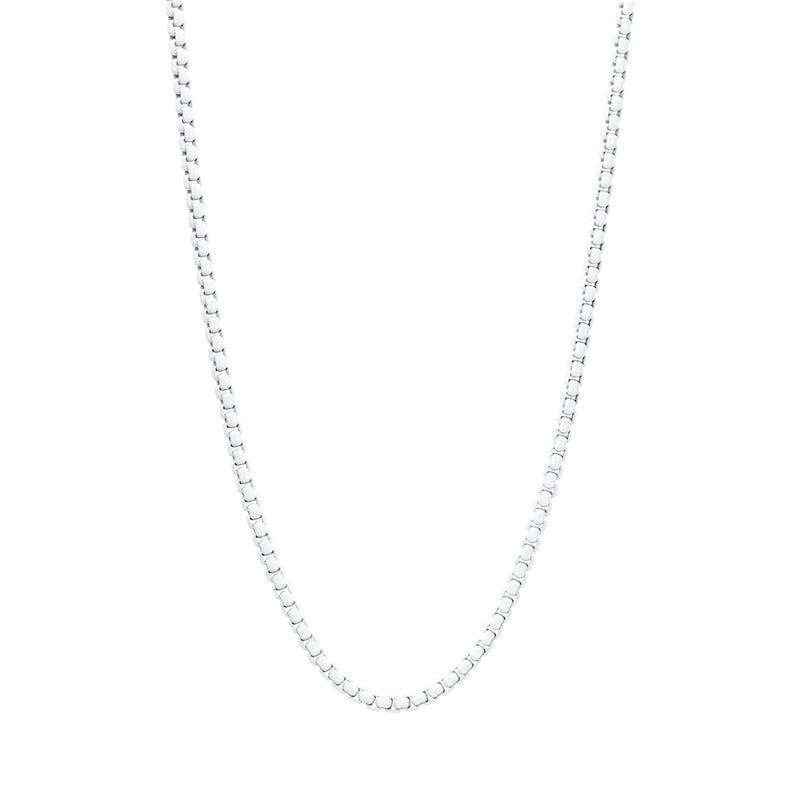 Simplicity is the soul of sophistication in our Sophia Box Chain Necklace in White Enamel. The elegant geometric angles create a classic standalone styling piece that looks every bit as luxe when layered with your favorite necklaces. Throw it on and never take it off. This go-to beauty makes minimalism a moment, season after season.