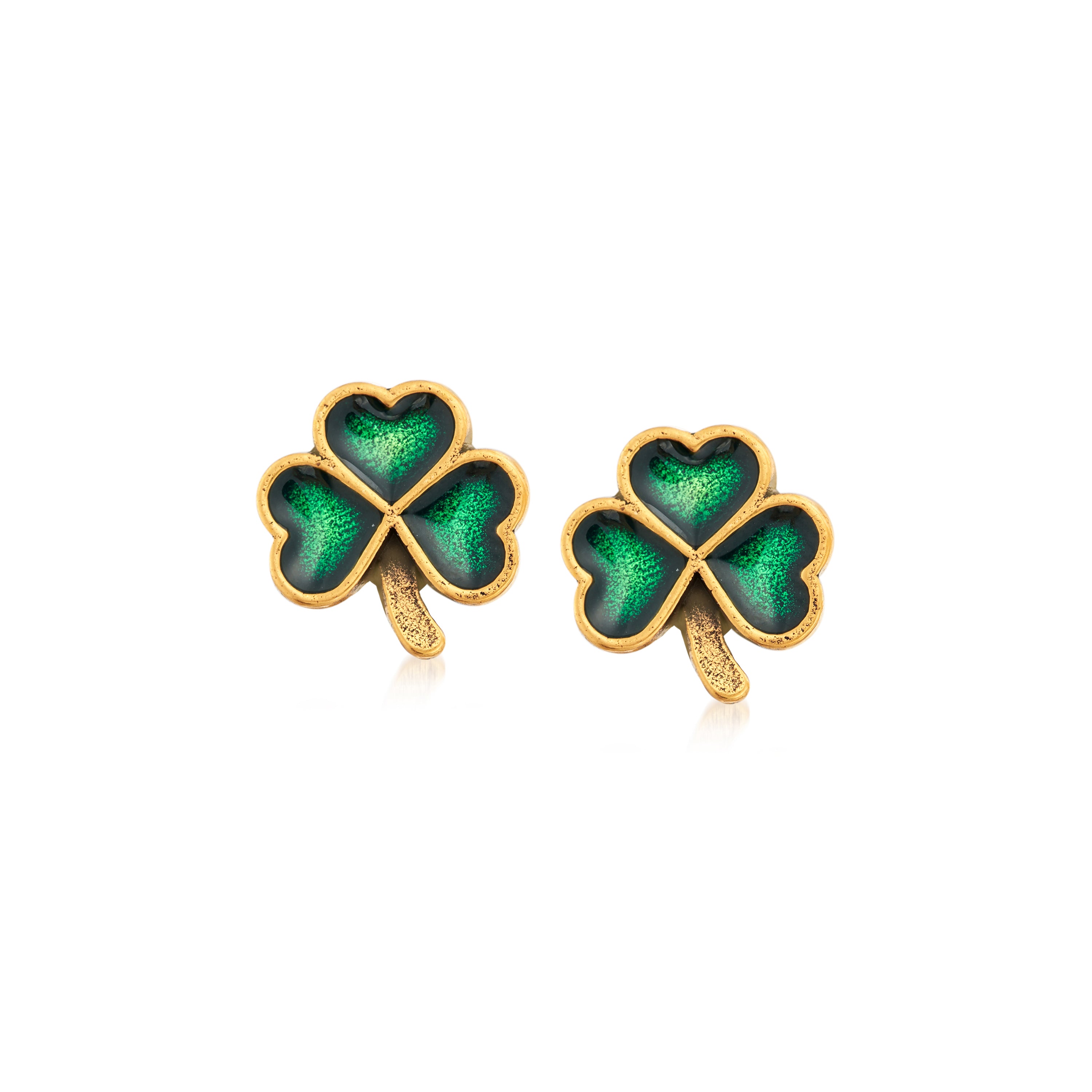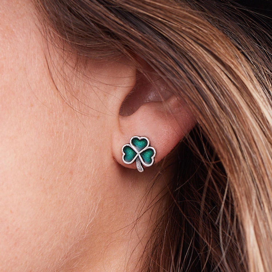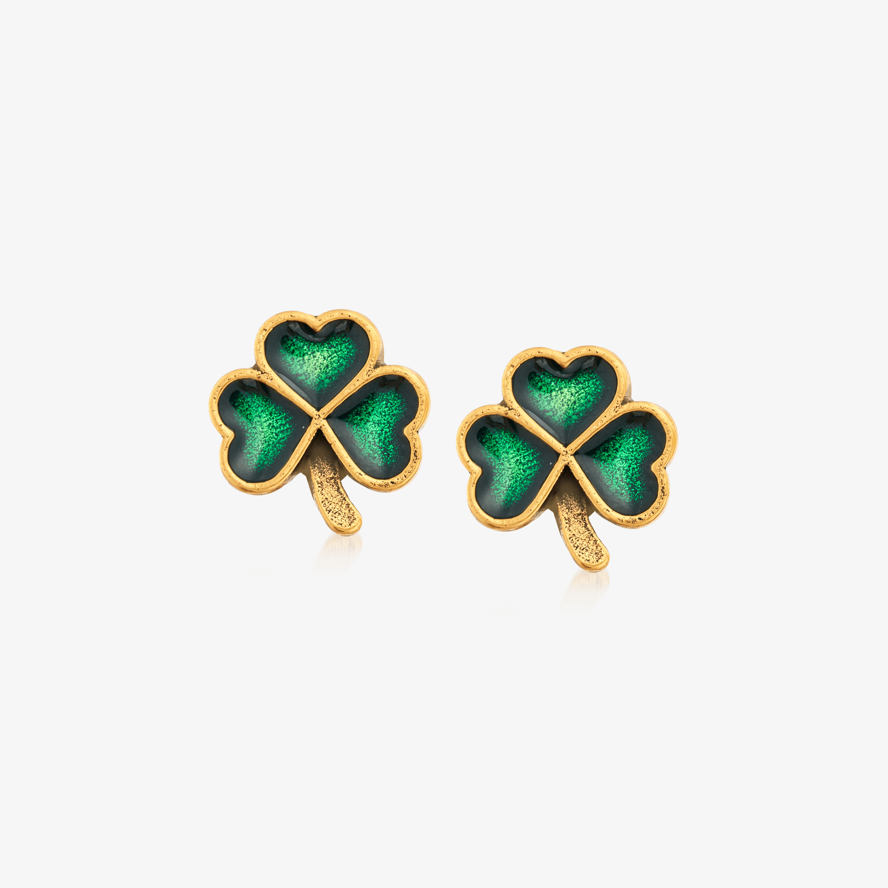 Luck will always be on your side in this pair of stud earrings celebrating the eternal symbol of Ireland. The shamrock’s heart-shaped leaves come to life with a dashing splash of green, while its winding design gives a wink to the classic Celtic knot.