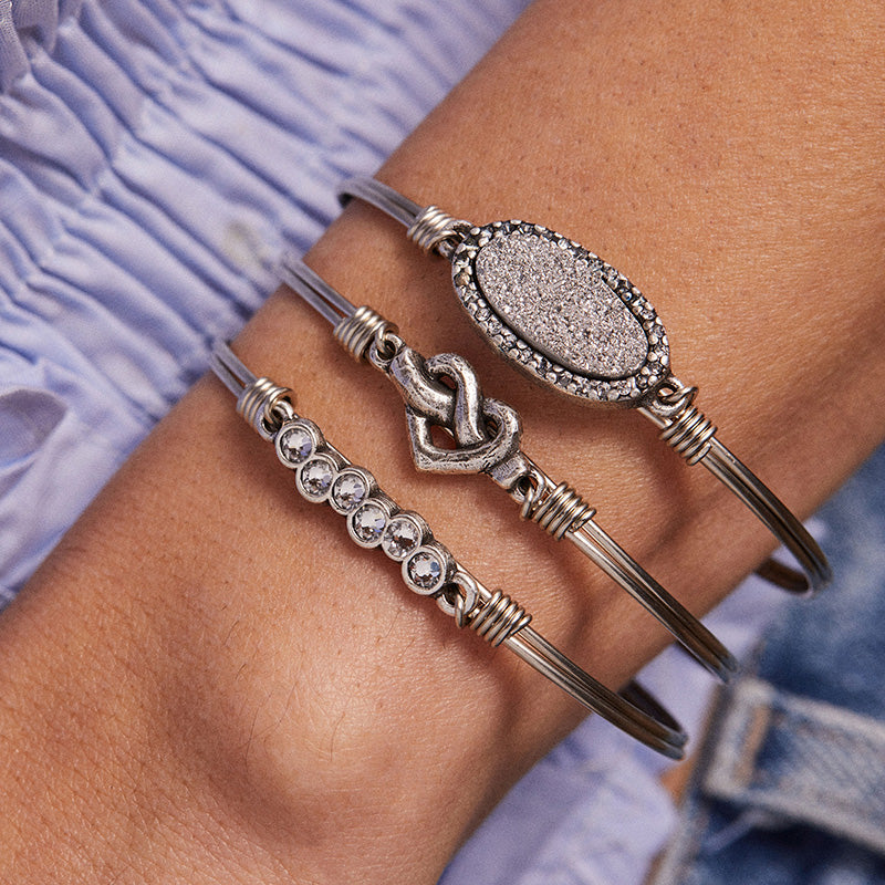 Pictured with: Pave Druzy Bangle Bracelet in Iridescent Silver, April Starlight Birthstone Bangle Bracelet